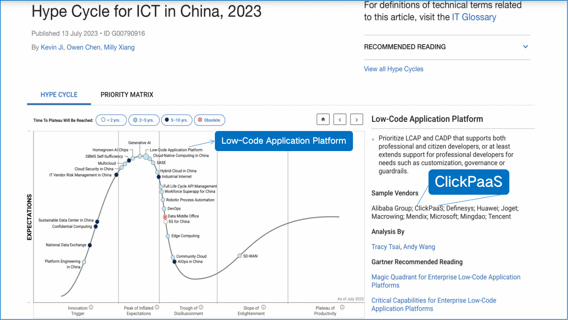 近日,国际权威研究机构Gartner发布了《Hype Cyple for ICT in China,2023(2023年中国ICT技术成熟度曲线)》报告,南宫28在线登录凭借平台的aPaaS+iPaaS+DaaS保障业务系统的一站式设计,多租户、热发布、国际化、信创安全等特性实力登榜,并作为低代码PaaS平台代表厂商TOP2入选本次报告。